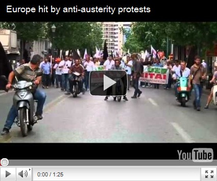 29 September 2010 Tens of thousands of people from around Europe have marched across Brussels in a protest against spending cuts by some EU governments. Spain has held a general strike, with protesters in Barcelona clashing with police and torching a police car. Other protests against austerity measures have been held in Greece, Italy, the Irish Republic and Latvia. Trade unions say EU workers may become the biggest victims of a financial crisis set off by bankers and traders. Many governments across the 27-member bloc have imposed punishing cuts in wages, pensions and employment to deal with spiralling debts. On Wednesday night, Portugal’s minority government announced proposals to cut civil servants’ pay and state spending while raising taxes in an attempt to lower the country’s debt levels. In Greece and the Irish Republic, unemployment figures are at their highest level in 10 years, while Spain’s unemployment has doubled in just three years. In Britain the government is planning to slash spending by up to 25% in some areas, while France has seen angry protests against a planned increase in the minimum retirement age. Police sealed off the EU headquarters and barricaded banks and shops ahead of the protest in Brussels. It was described by unions as a day of action under the slogan “No to austerity, priority to jobs and growth”. Tens of thousands of demonstrators, many carrying large red and green balloons and banners, headed towards EU institution buildings in the Belgian capital. …